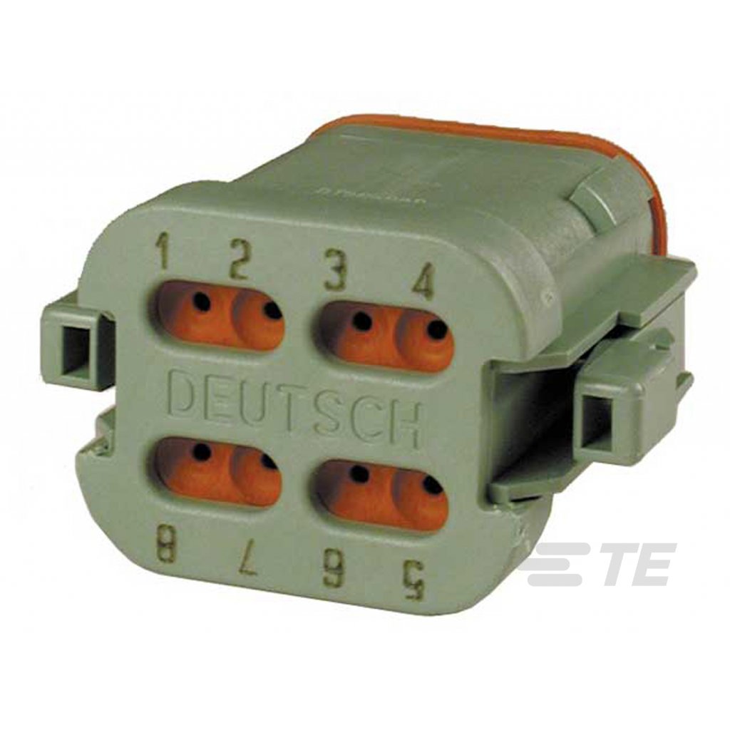 Tělo vodotěsného konektoru řady DT DT 06-08 SC-EP06 značky DEUTSCH je Konektor pro 12x dutinka #; seal retention; end cap;zelený; klíč C řady DEUTSCH DT patřící do kategorie Automotive Housings.