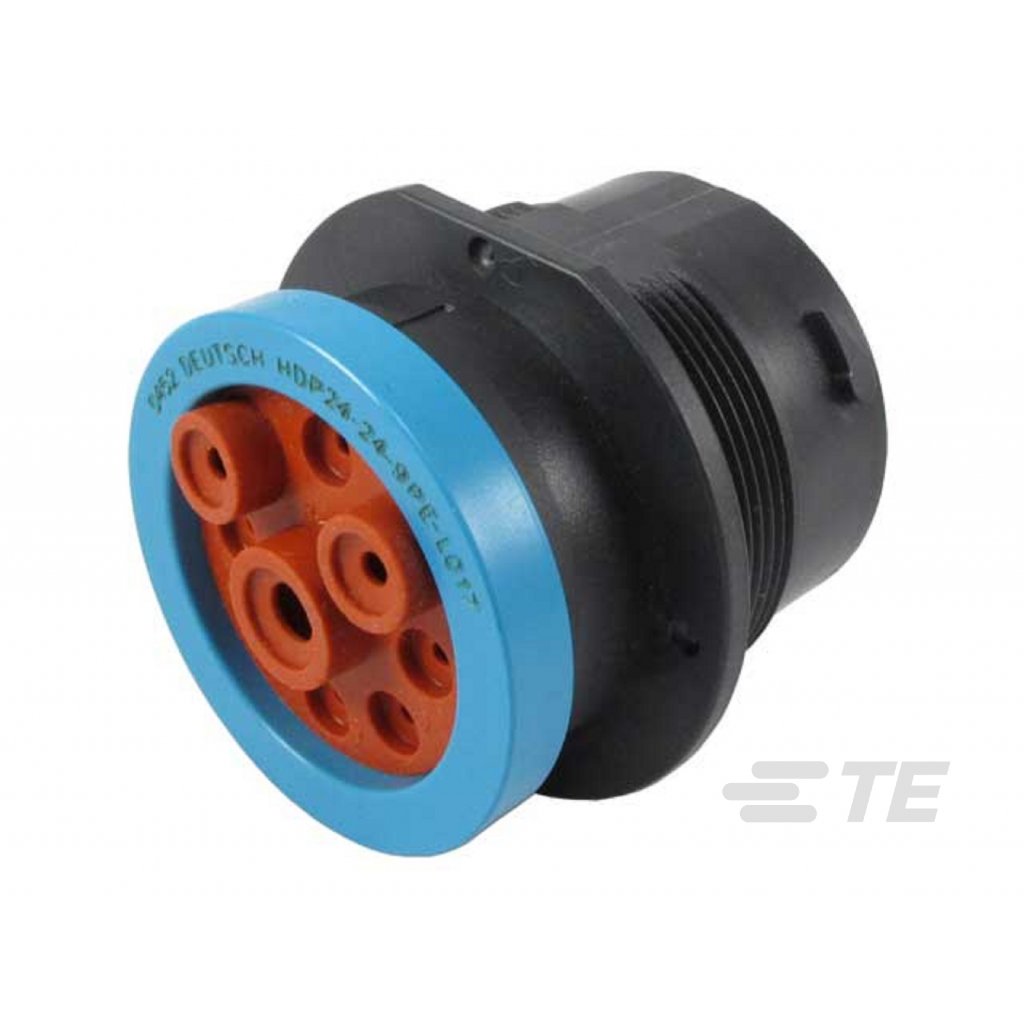 Série Deutsch HDP jsou velmi odolné, vodotěsné, vícepinové plastové konektory kruhového průřezu a umožňují kombinovat pro různé velikosti kontaktů. Mají bajonetový uzávěr a mohou být použity jak pro spojení kabel-kabel tak kabel-panel.