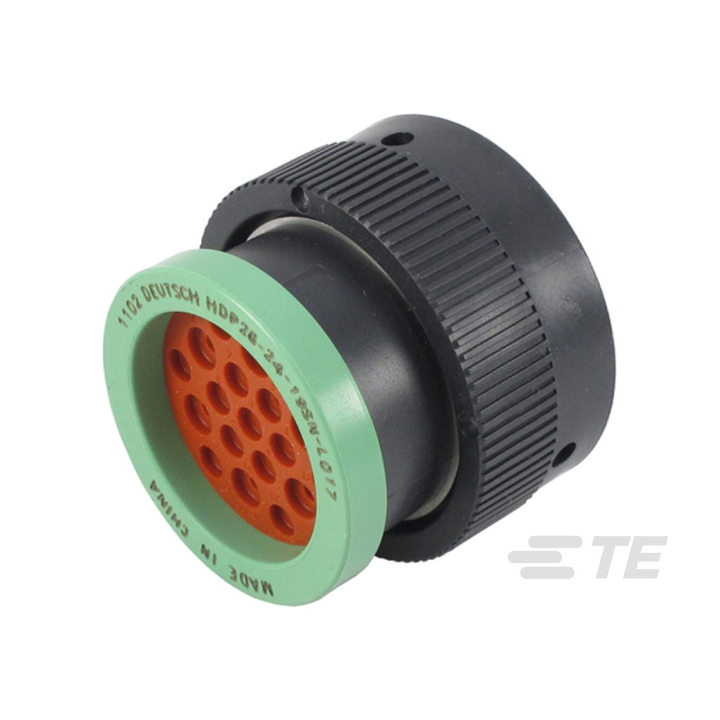 Série Deutsch HDP jsou velmi odolné, vodotěsné, vícepinové plastové konektory kruhového průřezu a umožňují kombinovat pro různé velikosti kontaktů. Mají bajonetový uzávěr a mohou být použity jak pro spojení kabel-kabel tak kabel-panel.
